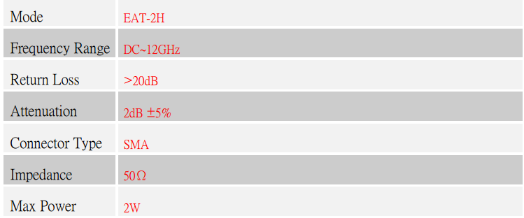 12GHz 2 W 衰減器